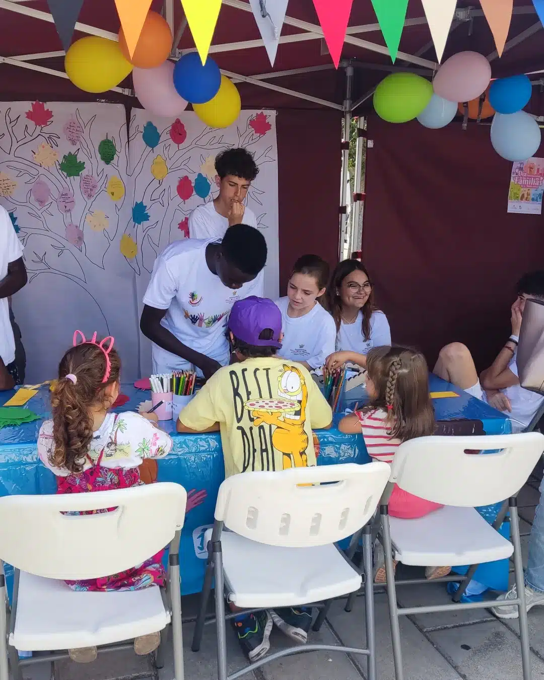 Se contó con la destacada participación del Grupo de Participación Infantil y Adolescente de La Orotava. Niños, niñas y adolescentes, siempre comprometidos con la defensa y promoción de los derechos de la infancia, organizaron y llevaron a cabo varias actividades interactivas. Entre estas actividades, se encontraban talleres de pintacaras, la creación del «árbol de la familia» y la elaboración de marcadores de libros junto a las familias presentes.