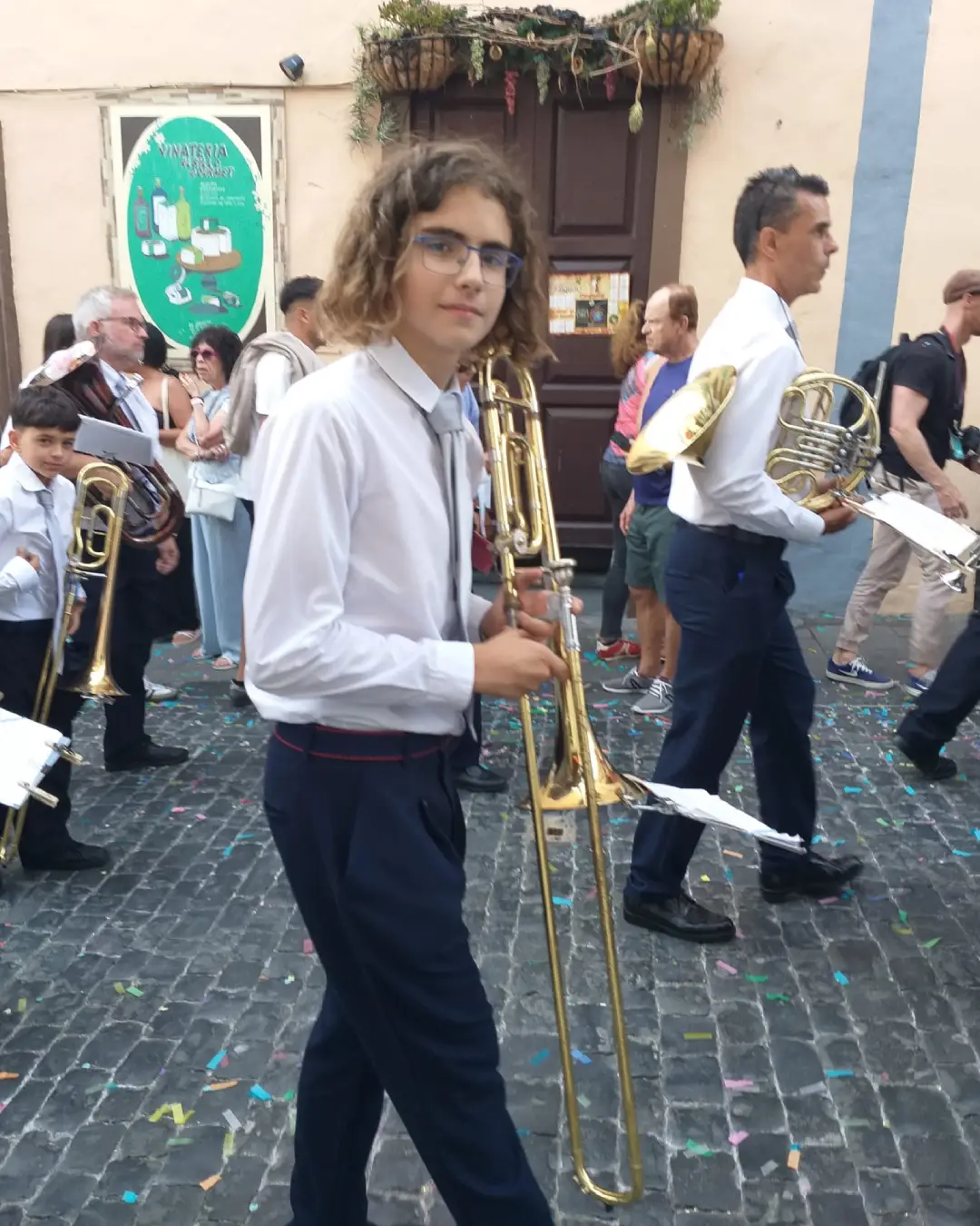El ambiente festivo estuvo acompañado por las notas de la banda municipal, que marcaba el paso del desfile. La conexión fue aún más especial, ya que dos de los miembros de OPIA también forman parte de la banda, demostrando una vez más el espíritu de colaboración y la plena integración del OPIA en la vida cultural y social de Breña Baja.