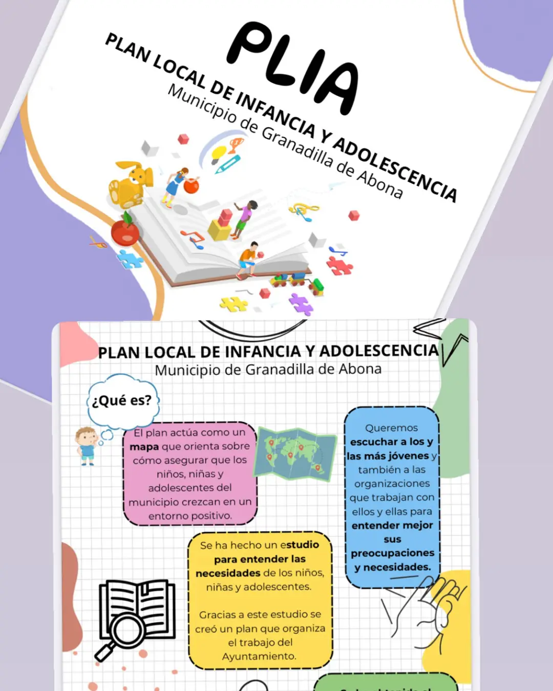 Además, desde el Servicio de Infancia, Adolescencia y Familias (SIAF), junto con el equipo motor del proyecto Ciudad Amiga de la Infancia, se está trabajando para hacer más accesible el Plan Local de Infancia (PLIA). Con el apoyo de la Fundación Imagine 2050 (@fundacionimagine2050), se ha creado un documento que recoge los principales retos del municipio hasta 2026, explicado de forma clara y adaptada a la infancia.