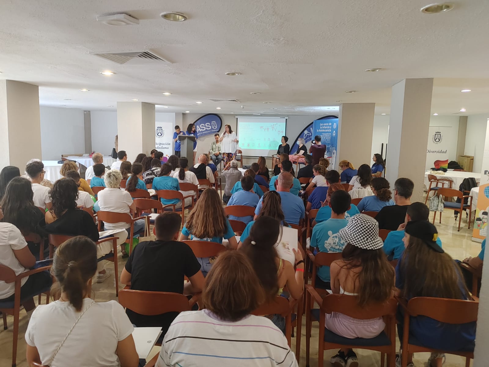 El Encuentro, organizado este año por el Cabildo de Tenerife, y con la presencia de 48 chicos y chicas, 4 por cada Consejo Municipal Infantil y Adolescente presente en el archipiélago hasta el día de hoy, se han dado cita en la isla de Tenerife.