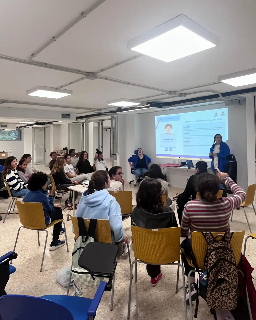 Por un lado, se explicó al personal técnico y profesional que trabaja con niños, niñas y adolescentes en Canarias la metodología del proceso de consulta. Además, se presentaron recursos y herramientas útiles para motivar a los grupos y recoger de manera adecuada sus demandas, opiniones y propuestas.